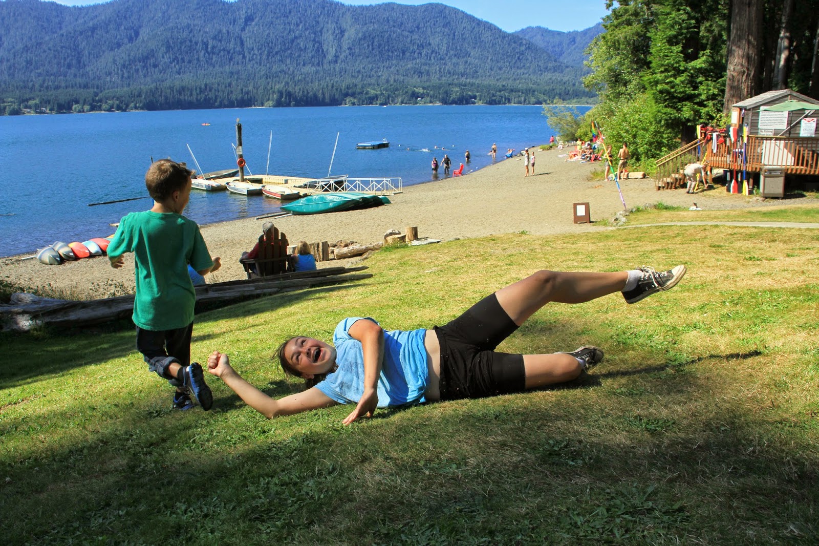 Sadly my sweet sister-friend Kevin stumbled in the dusky evening after the sunset and fell onto the road. She was determined to deal with her injuries by denying their existence. She had road rash from her forehead to her chin and felt pain in her arm. She didn't want to take from the upcoming wedding day but that morning I ended up driving her up to the ER in Forks. Her arm was bruised and it hurt her to move it. The doctor x-rayed and said it was fractured. They sent her back to camp in a sling with orders to see an orthopedic surgeon at her first opportunity. Kevin left for home, and 'real' medical treatment the day after the wedding.